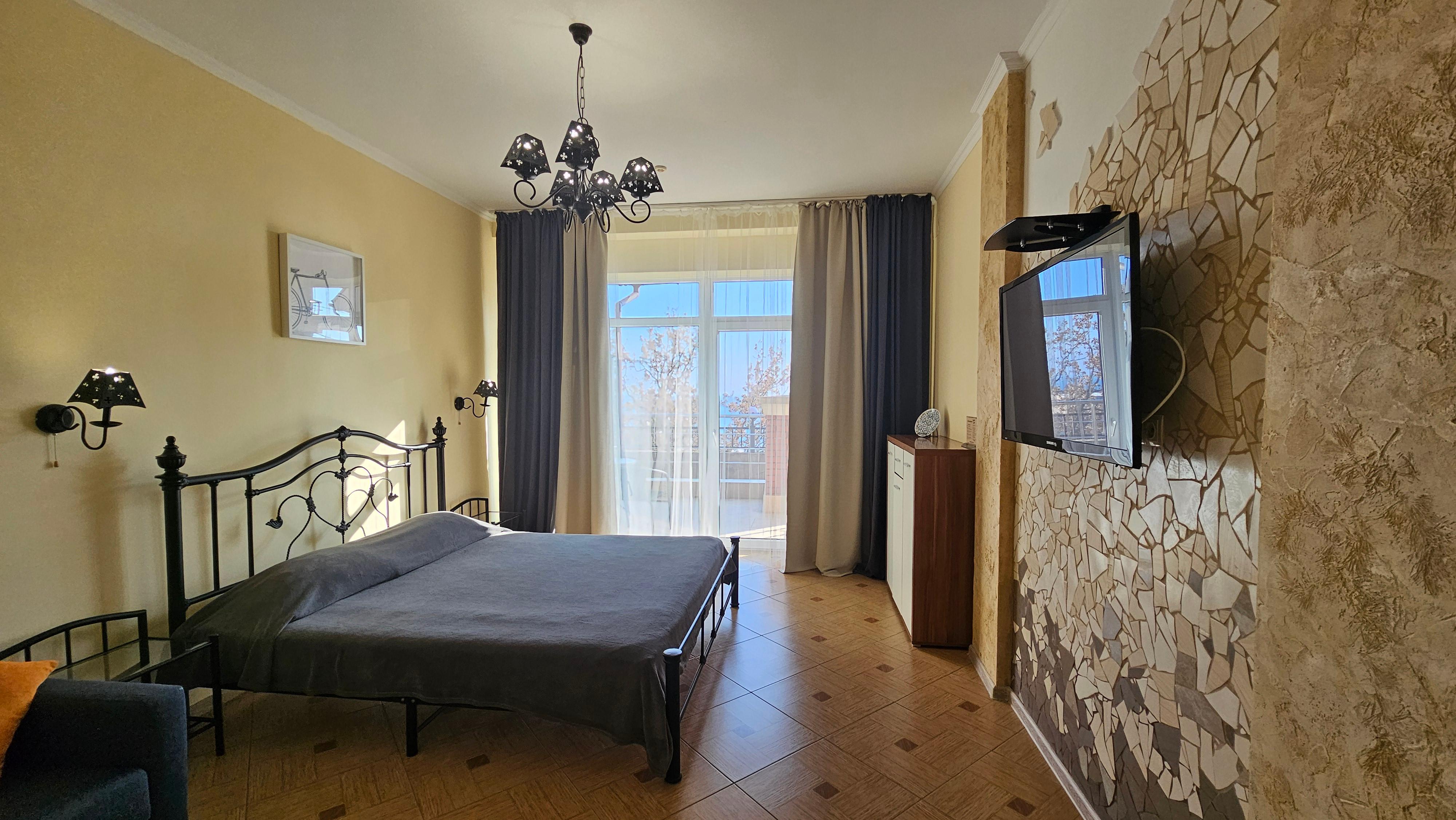 Наш роскошный номер предлагает вам просторное проживание с кинг-сайз кроватью, отдельной гостиной зоной, личным балконом и роскошной ванной комнатой. Насладитесь утонченным комфортом в этом уникальном номере с видом на море